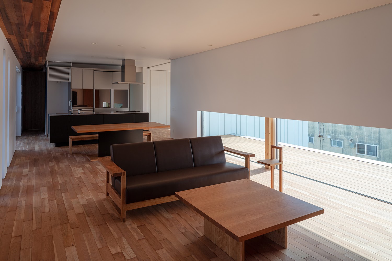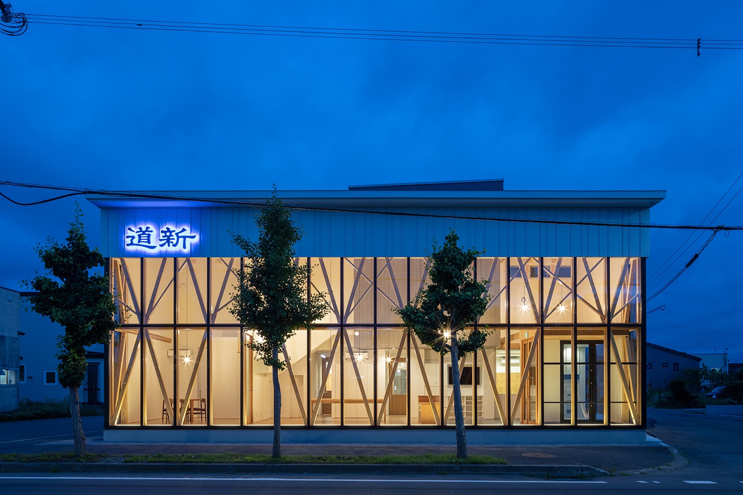 空間を要望されていたので、木軸を活かしたカーテンウォールを構成し