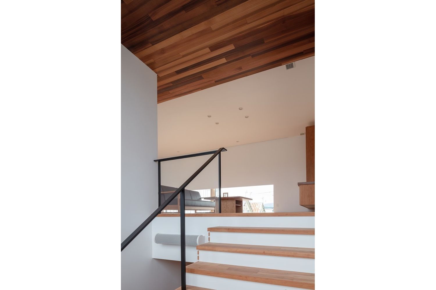 敷地形状を活かし24mのボリュームを持つ特徴的な空間とした。