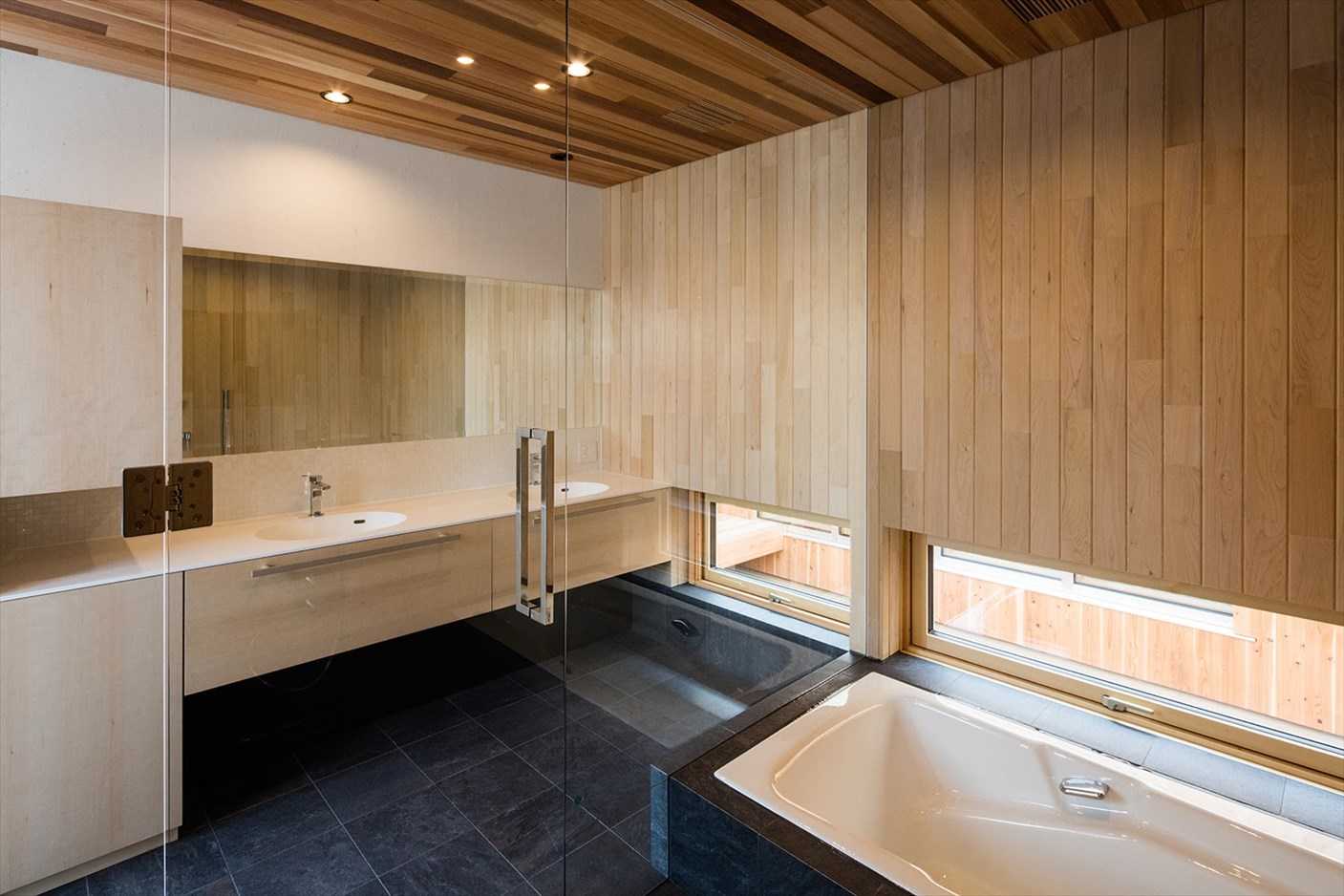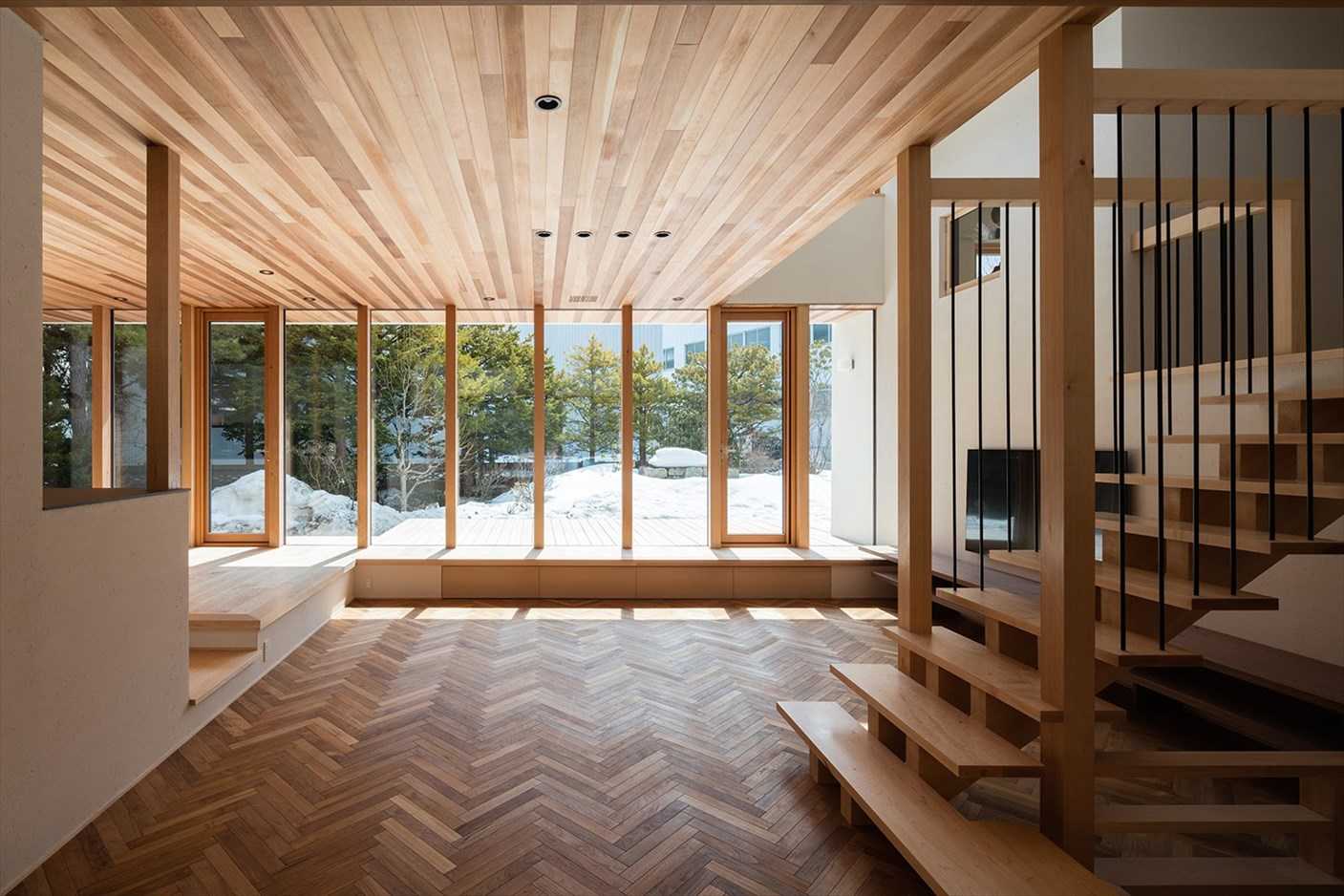 玄関・ホール・リビング・UT・浴室から坪庭を見ることができる。