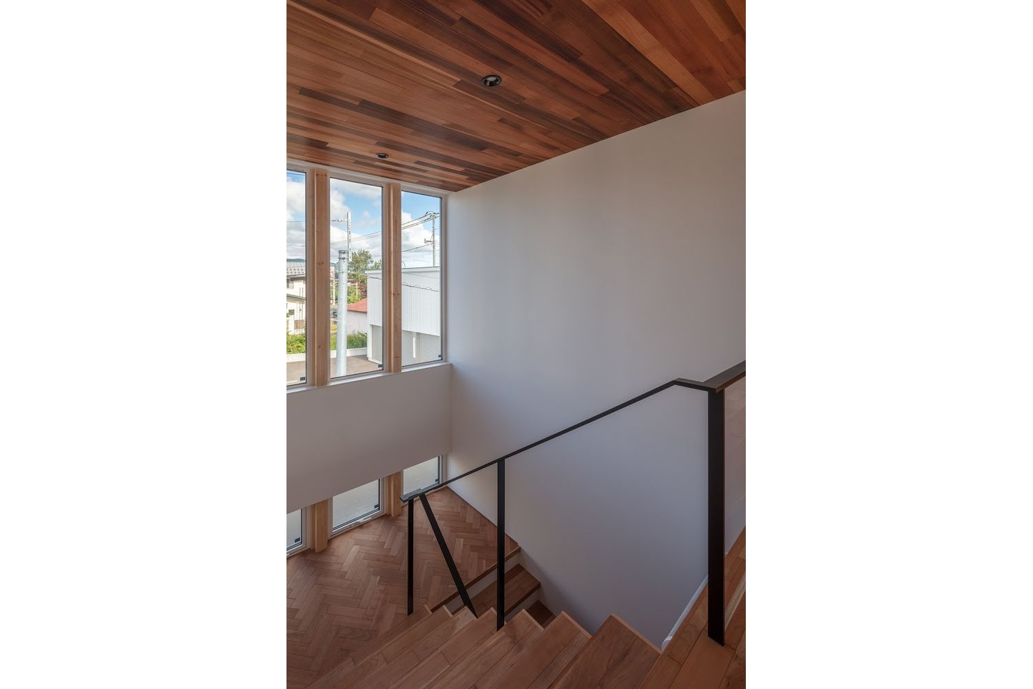 敷地形状を活かし24mのボリュームを持つ特徴的な空間とした。